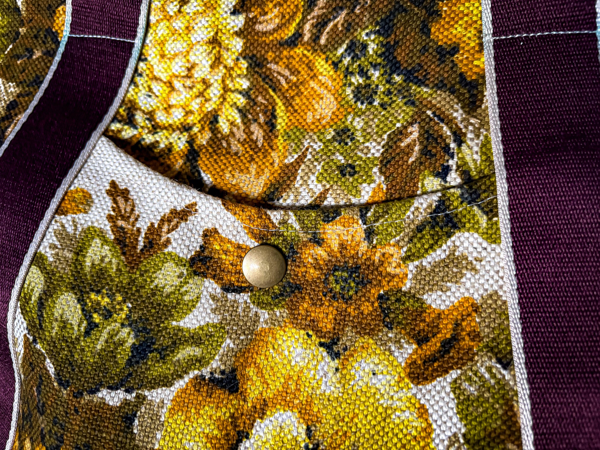 This one is created from vintage fabric that has a slight texture (it likely was upholstery fabric). Inside is a lining made from vintage sheets